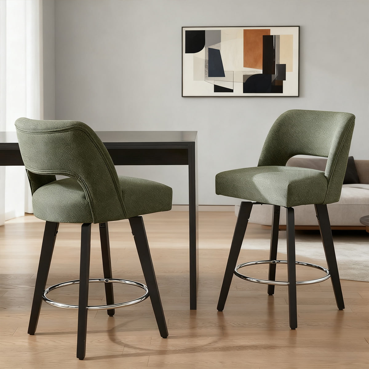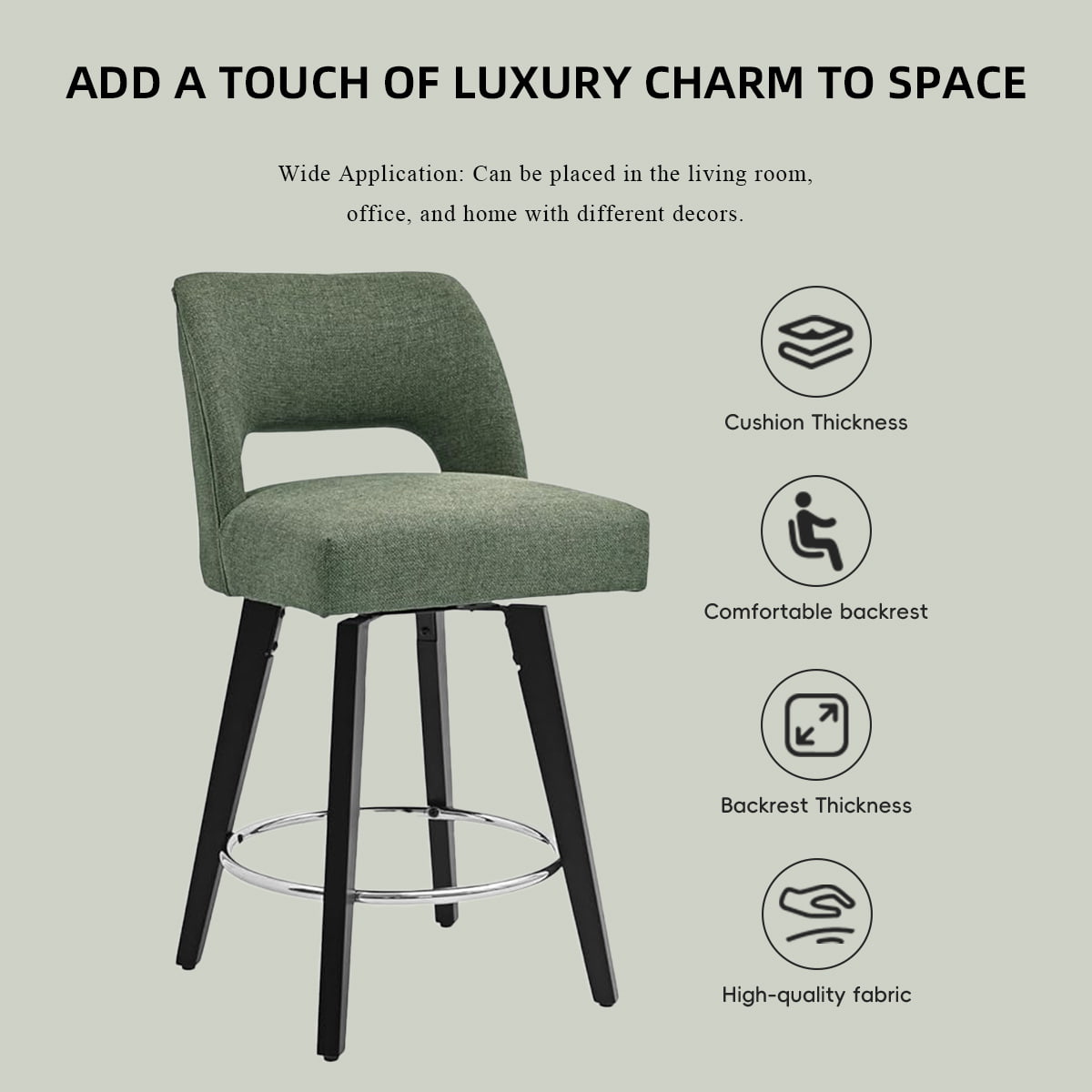 Scaun de bar modern, verde, pivotant, pe înălțime, cu spătar și picioare metalice | Scaune de bar tapițate cu lenjerie pentru Insula Bucătăriei și Pub Home