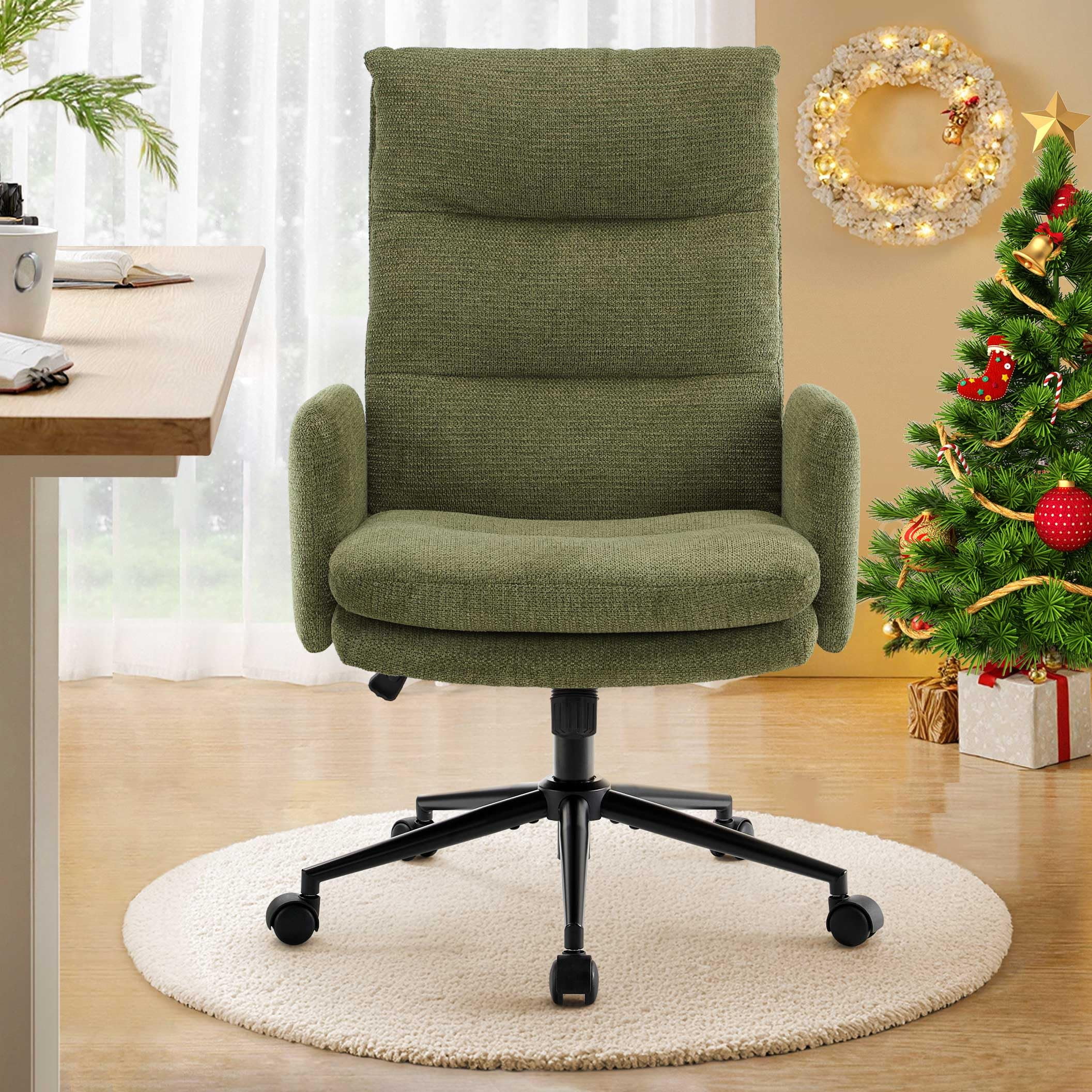 Scaun de birou din cașmir cu spătar înalt cu înălțime reglabilă, bază pivotantă și pernă groasă dublă căptușită pentru biroul acasă