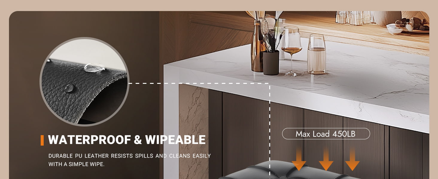 Pielea PU rezistentă la apă, care se curăță cu ștergere, rezistă la scurgeri, pete și uzură zilnică.