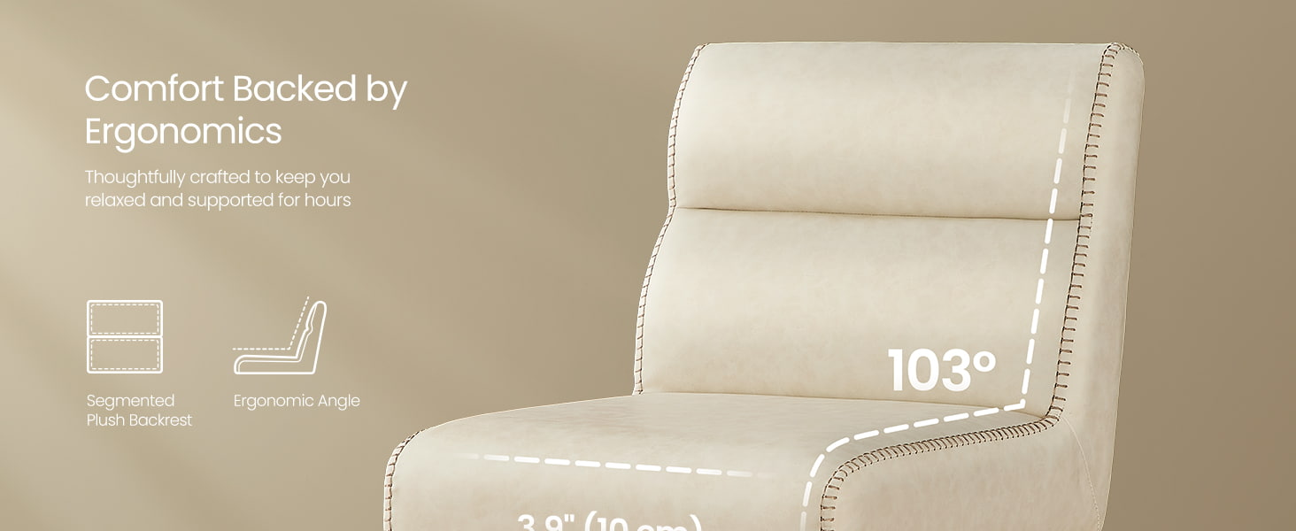 ● Spătar segmentat la 103° ergonomic pentru sprijin lombar echilibrat