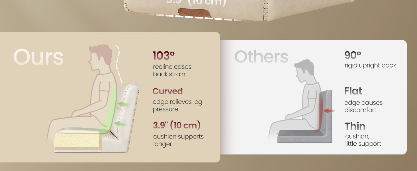 ● Marginea curbată a scaunului pentru a reduce presiunea picioarelor în timpul șederii prelungite